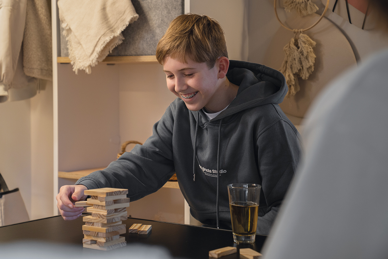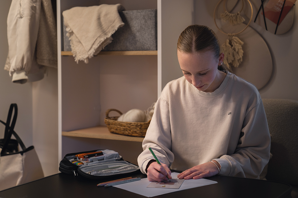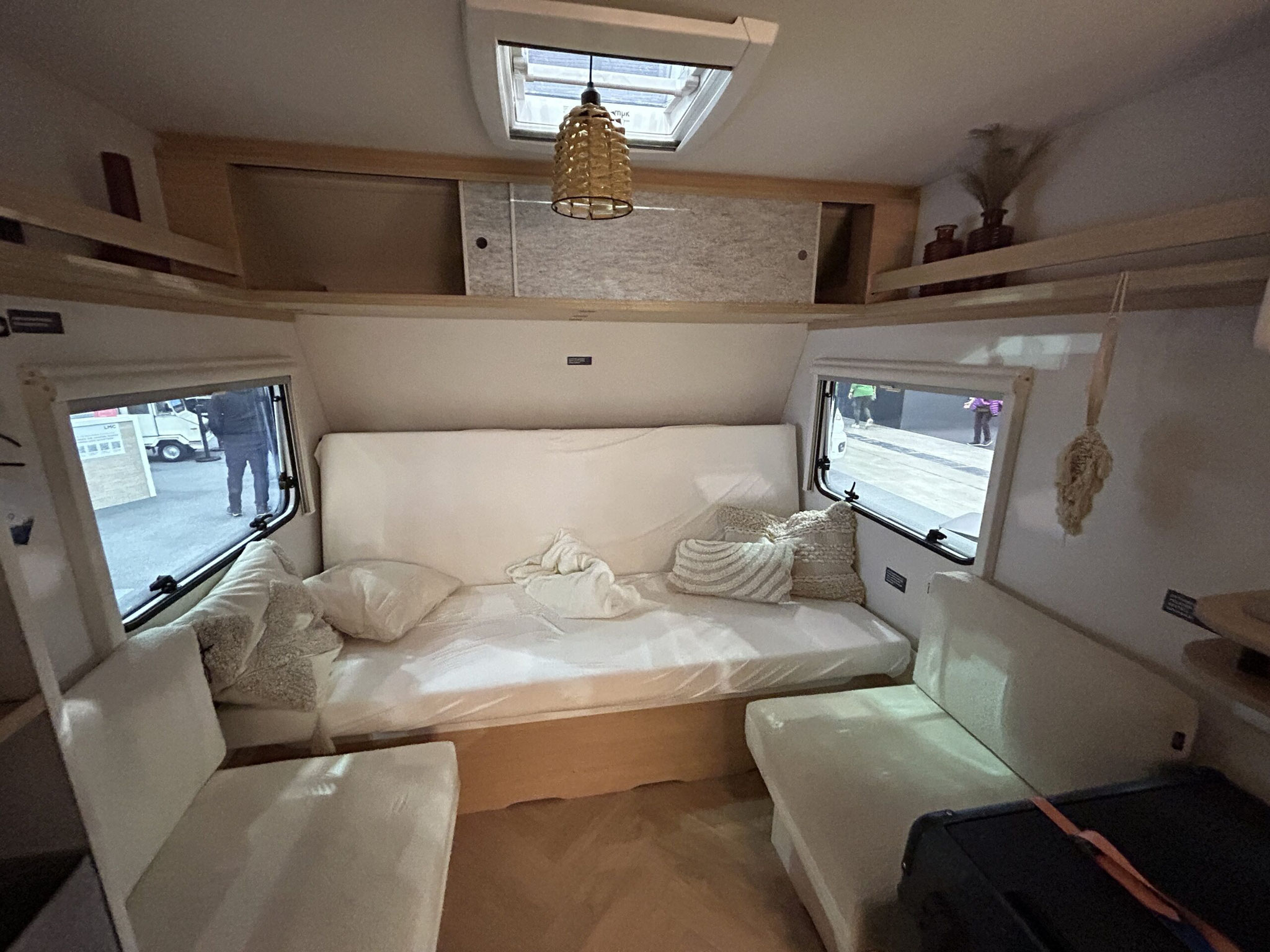Fest-Doppelbett vorne , quer, auch als Einzelbetten längs nutzbar